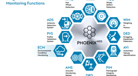 El sistema detección de cajas calientes y frenos agarrotados PHOENIX MDS está en condiciones de identificar de manera fiable las sobretemperaturas peligrosas de todos los tipos de cojinetes de eje y sistemas de freno y detectarlo con velocidades de trenes de hasta 500 km/h.