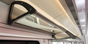 Los portaequipajes superiores son elementos ligeros fabricados principalmente en aluminio o en combinación con componentes de vidrio o plástico. Se pueden fabricar con diferentes longitudes y formas que pueden combinarse entre sí en el vehículo. Las estanterías pueden estar equipadas con ganchos de mano, luces de lectura, indicador del número de asiento y altavoces con cableado eléctrico listo para conectar.